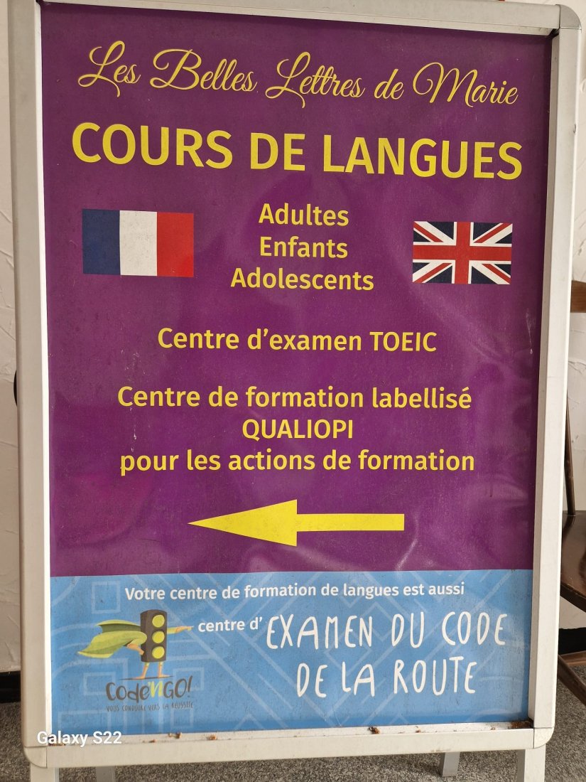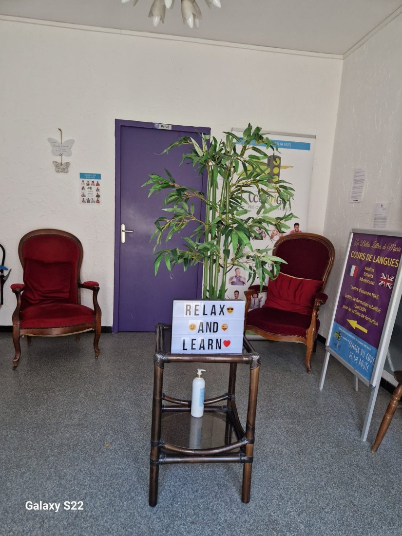 Locaux modernes des Belles Lettres de Marie à Gap, mettant en avant les diplômes, certifications et les deux salles de cours thématiques : London et New York.